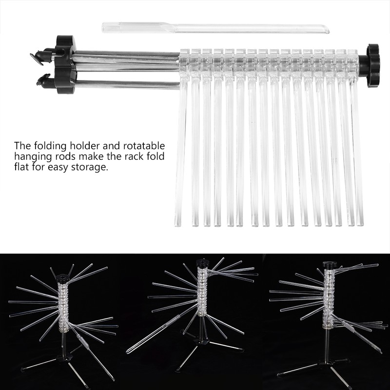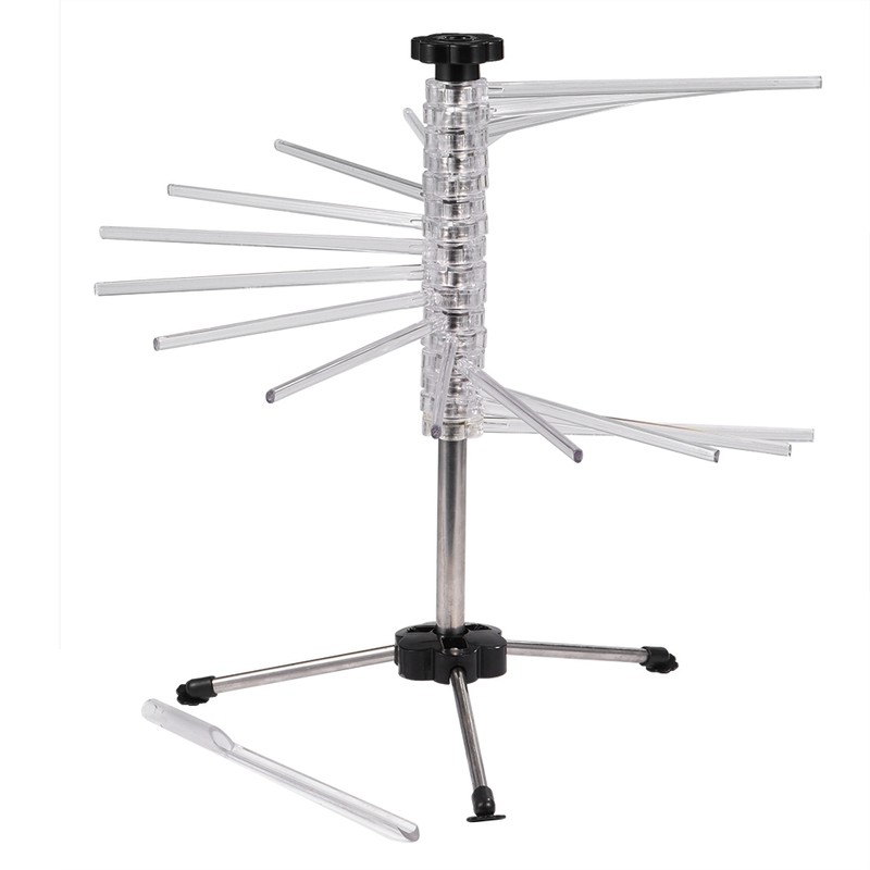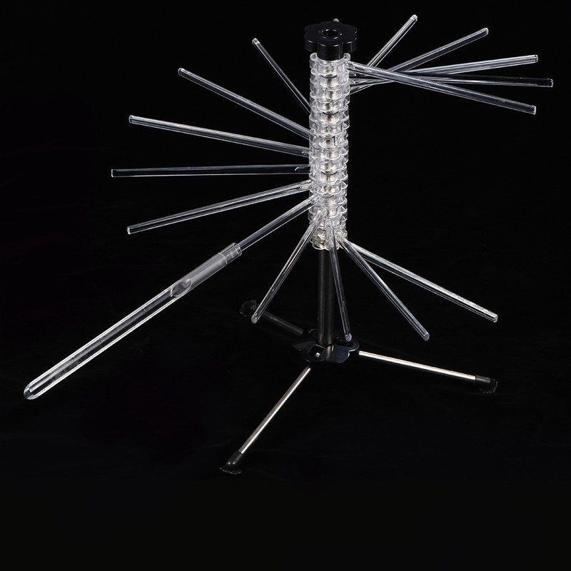 1、The hanging rods are made of PC and ABS, non‑toxic and easy to wipe with wet cloth 2、Practical multi-rods design, it holds plenty of pasta at the same time 3、The rotatable hanging rods allow you to hang pasta from various angles and make full use of space 4、The stainless steel holder supports the drying rack firmly and steadily 5、The folding base is designed for easy storage and space-saving