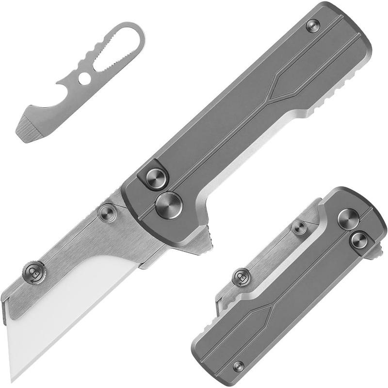 Folding Pocket Utility Knife, Quick Change Box Cutter with Rail Lock, EDC Razor Knife with Pocket Clip for Office, Factory Serrated Blade Tactical Pocket Knife tool survival:_Doughnut