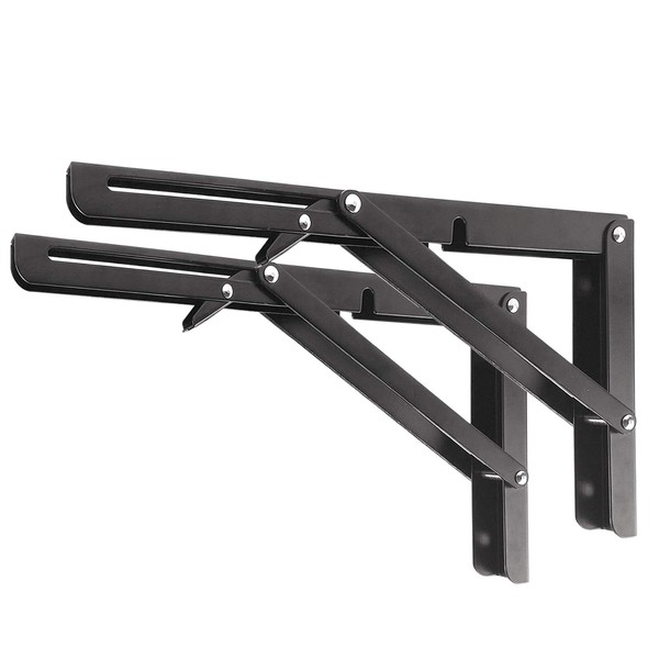 Folding Shelf Brackets - Heavy Duty Metal Collapsible Shelf Bracket for Bench Table, Shelf Hinge Wall Mounted Space Saving DIY Bracket, Max Load: 150 lb 2 PCS (12 in, Black)