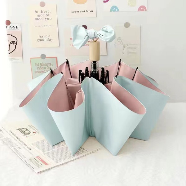 1、Protective Effect: This foldable umbrella cover uses thick vinyl sunscreen coating technology, which effectively blocks uv rays and forms a strong shading layer, reducing the heat of the body under the umbrella and protecting the skin from sunburn and tanning. 2、Cute Decoration: The cover of this folding umbrella can be tied into a cute bow as decoration, making your umbrella more unique and beautiful in the crowd. 3、Folding Method: After closing the umbrella, your left hand needs to gather the umbrella bead and hold it tightly, hook the folded corner with your right hand, then smoothed the umbrella cloth along with the fold, roll the umbrella clockwise, and finally tighten the umbrella belt and fasten the umbrella buckle. 4、Material: This folding umbrella frame is made of black lacquered steel bones material with strong wind resistance, and not easy to break, the umbrella cover is made of vinyl material, which can resist UV radiation and waterproof. 5、Easy Carry: This folding umbrella can easily be placed in your backpack and suitcase, it is small, not occupy an area and can quickly dry, which is very easy to carry for you.