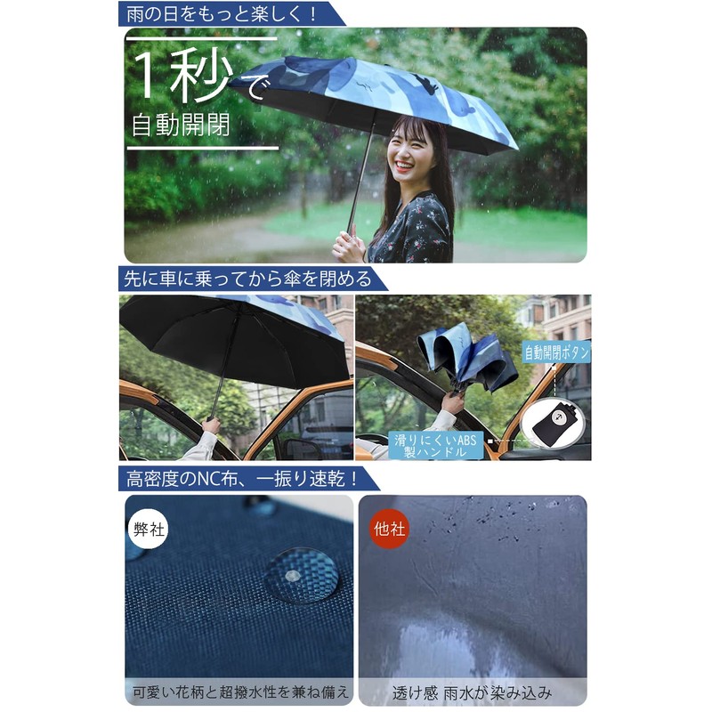 - Automatic Open and Close Folding Umbrella: This folding parasol can be opened and closed automatically with one button. When the sun gets stronger, simply pop out the umbrella and press the button to shut out UV rays. Convenient when you get in or out of a car, carry luggage or a child. Keep it in your regular commuting bag for emergency weather