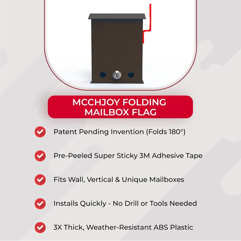 - INNOVATIVE - Invented by MCCHJoy exclusively for vertical mailboxes/wall mounted mailboxes. Folding Flag design adjusts to the shape of vertical mailbox lids and raises up/down vertically (patent pending). 180 degree vertical movement mailbox flag