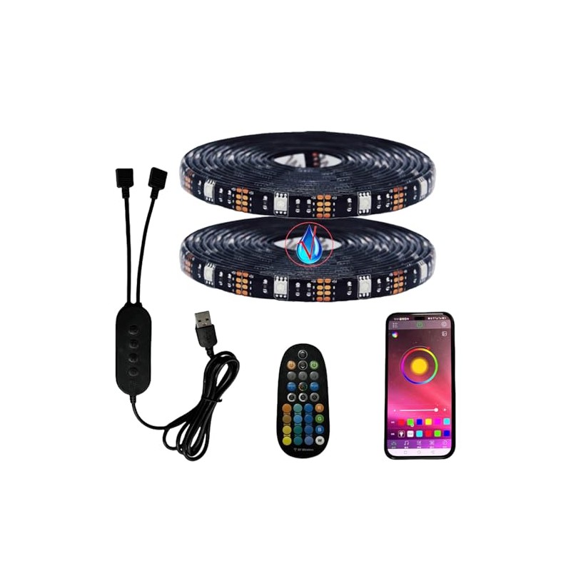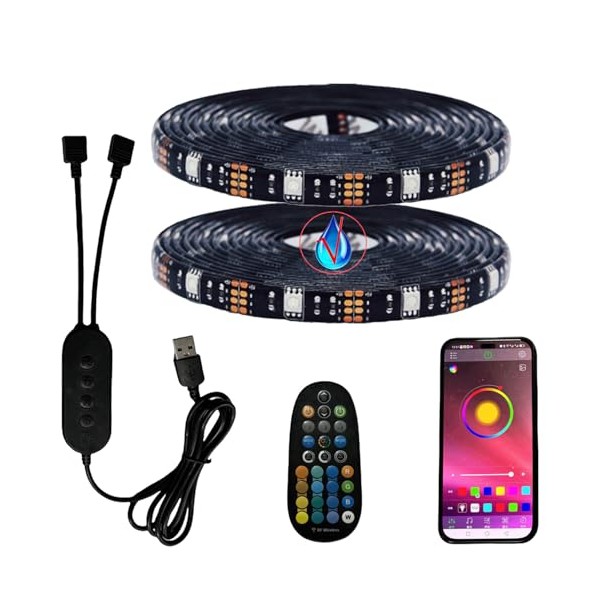 FOLGEMIR FOLGEMIR 1 meter (2x 0.5M) RGB LED strip dimmable, Bluetooth/APP controlled TV USB backlight with RF remote control, 5050 RGB strip for HDTV TV lighting, waterproof IP65
