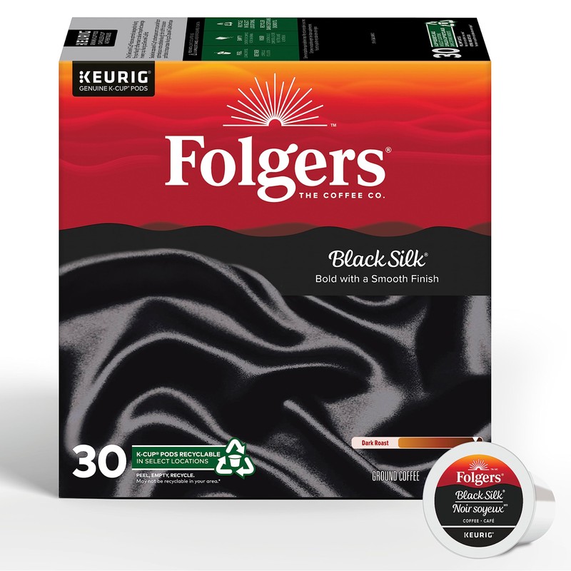 Folgers Black Silk Dark Roast Coffee, Single-Serve K-Cup Pods For Keurig Coffee Makers, 30 Count