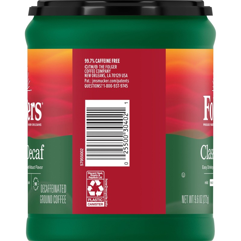 - Contains one (1) 9.6 ounce AromaSeal canister of Folgers Classic Decaf ground coffee