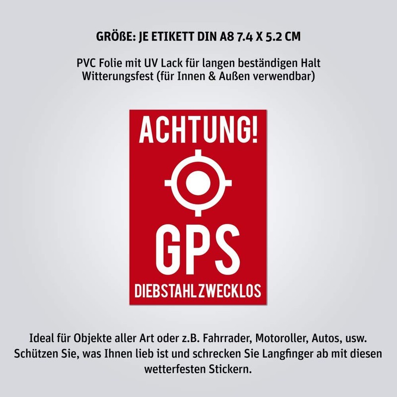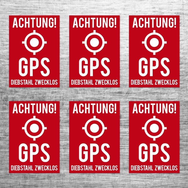 • ✔ Set of 6 stickers "Attention GPS – Theft without purpose" DIN A8 7.4 x 5.2 cm red/white