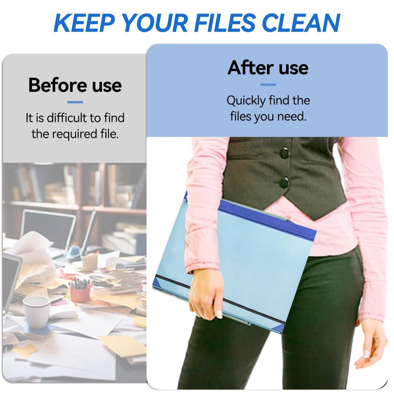 • 【Perfect Design】This expanding file folder is perfect for people on the go. Its compact size and sturdy construction make it easy to carry and protect your documents wherever you go. Keep all your vital papers in one place, ensuring they are easily accessible whenever you need them.