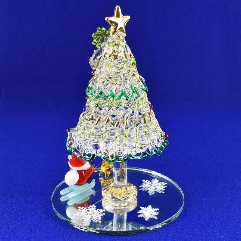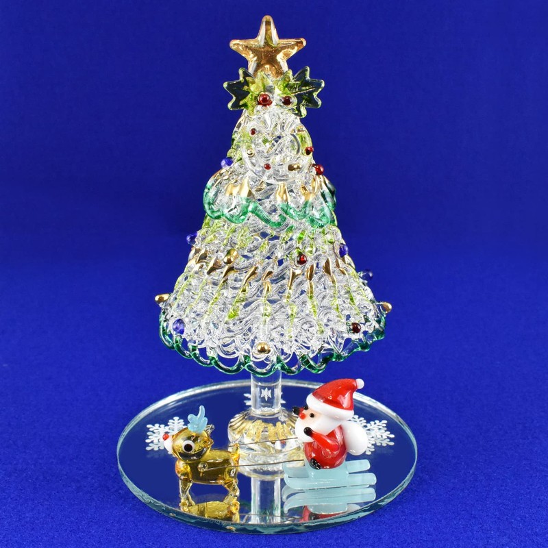 Folkart Cute Handmade Glasswork Sleigh Pull Santa Tree Set