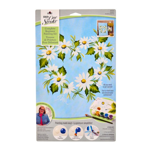 FolkArt One Stroke, Beginner Painting Kit, Includes 5 Paint Pots, 12 Flat Brush, and a Reusable Teaching Guide, Daisy