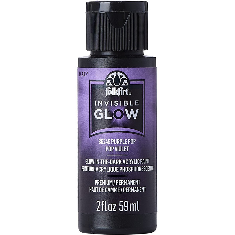 FolkArt Invisible Glow Acrylic Craft Paint, Purple Pop 2 fl oz Premium Glow In The Dark Paint, Perfect For Easy To Apply DIY Arts And Crafts, 36245