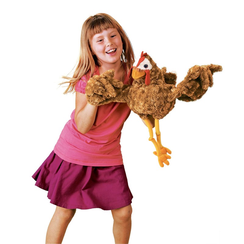 - Easily animate the antics of this engaging Chicken plush hand puppet