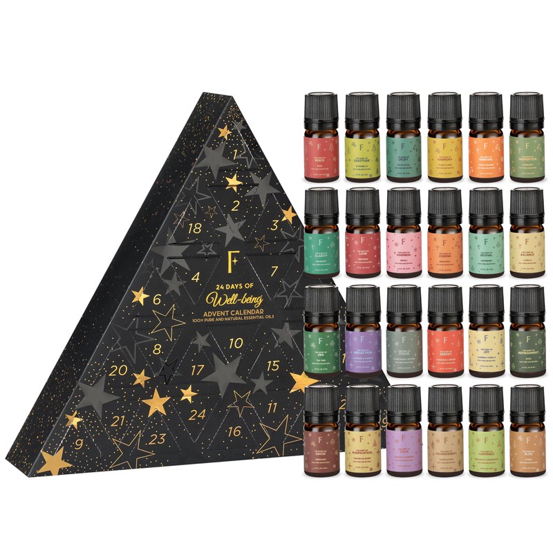- [24 ESSENTIAL OILS SET] - Delight in 24 unique 5ml pure and frangrance oils for diffuser, presented in a designed gift box. Ideal for savoring a new scent every day of the holiday season, this essential oils for candle making offers a month of aromatic well-being. Perfect for friends or family, this candle oil scents is the ultimate gift for any celebration.