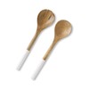 - The wood salad servers or wood salad tongs have ergonomically designed wide handles and heads for comfort grip and to stay cool while cooking, serving or mixing. The shape of these salad spoons and salad forks make them ideal for large salad bowls.
