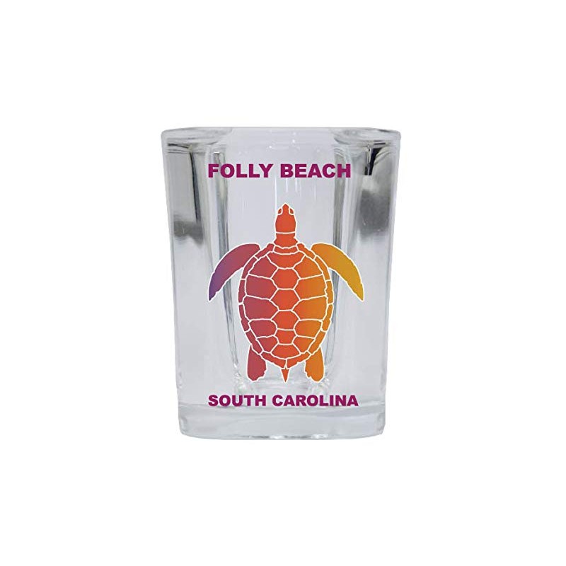 FOLLY BEACH South Carolina Square Shot Glass Rainbow Turtle Design