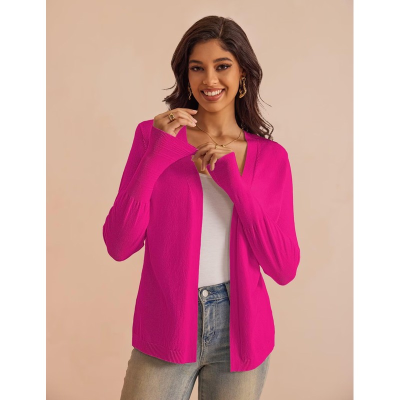 FOLUNSI Women‘s Caridgan Sweaters Open Front Cropped Cardigans Lightweight Knit Sweater Dressy Casual Rose, Medium