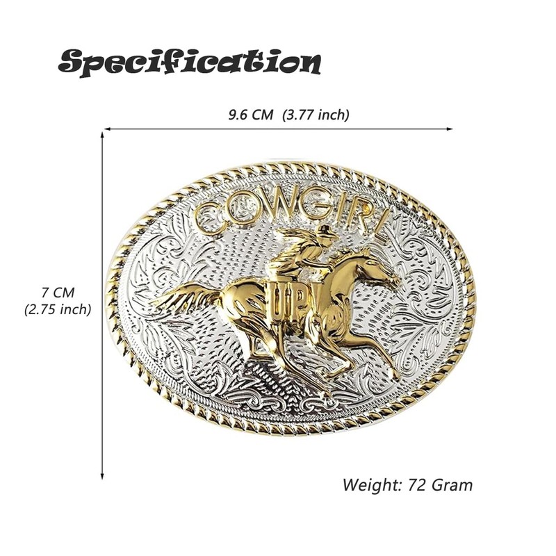 - Hebilla de cinturón novedosa ---- Cowgirl Up. Adopta una plata brillante combinada con tono dorado, esta hebilla de cinturón de vaquero occidental rodeo es única y elegante, destacará tu personalidad y se convertirá en un punto culminante de tu atuendo general