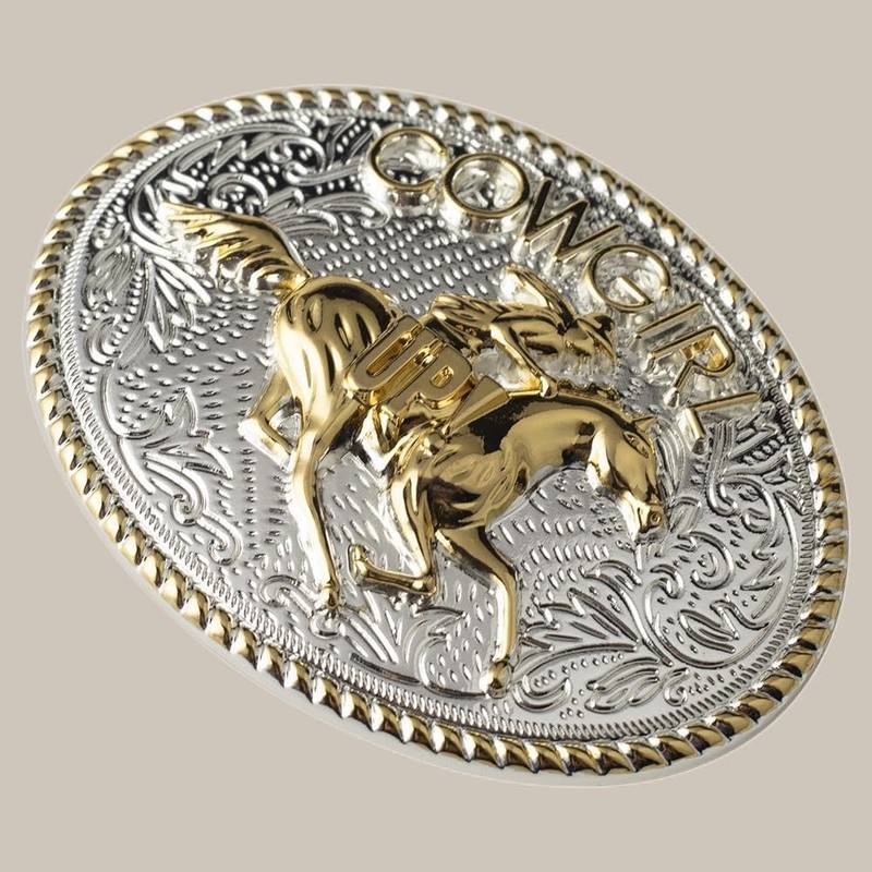 Cowgirl Up. Adopta una plata brillante combinada con tono dorado, esta hebilla de cinturón de vaquero occidental rodeo es única y elegante, destacará tu personalidad y se convertirá en un punto culminante de tu atuendo general