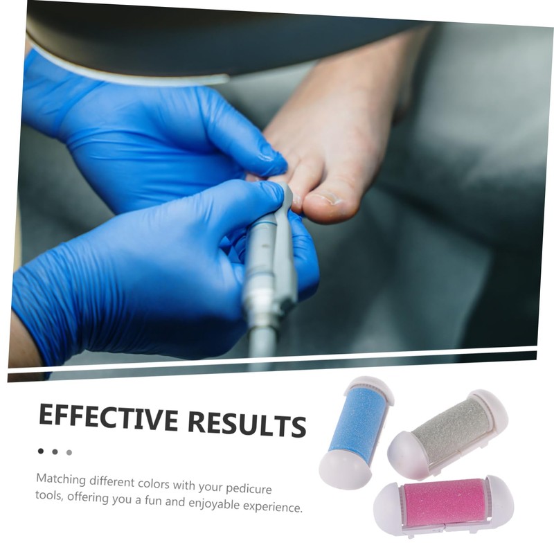 Pedicure Tools With this set, you can conveniently replace the worn-out or damaged heads.Foot File Refill Rollers These roller heads are specifically designed to fit various models of foot files, ensuring easy replacement and maintenance.Pedicure tool Refill Rollers This set of electric foot file roller heads includes various bright colors