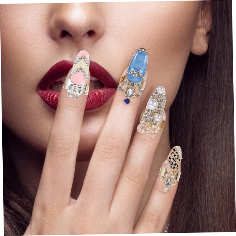 Nail Art Decor These finger nail rings are made of alloy, and they are covered with of rhinestones on the surface.Creative Ring Sturdy and reliable, not easy to wear and tear, the rhinestones stick firm, will not fall off easily while using.Nail Decor Suitable for various occasions, like Halloween costumes, dance, performances, role playing, party concerts, cosplay parties
