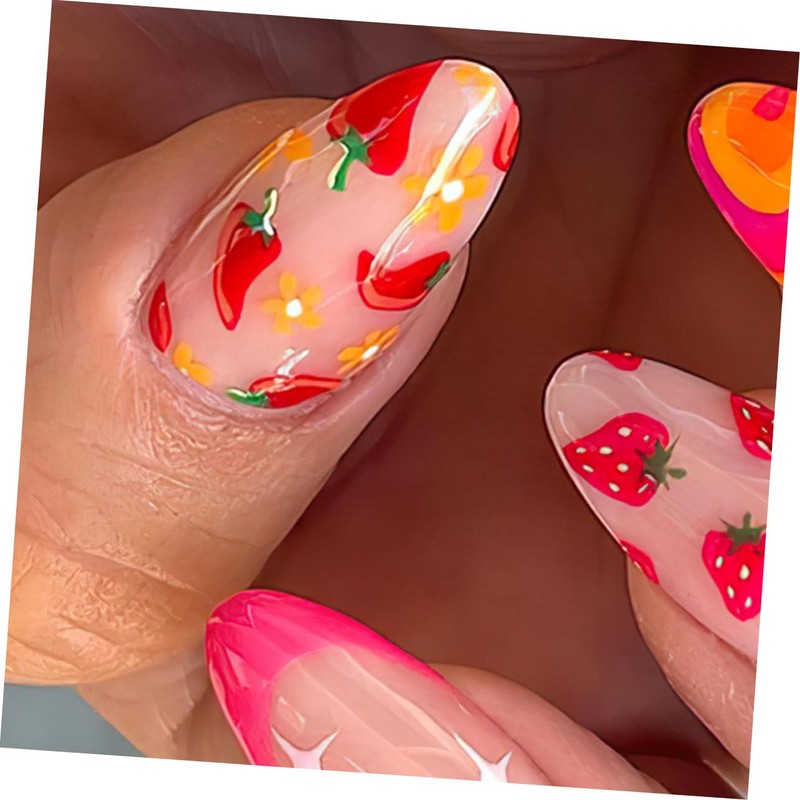 FOMIYES 48pcs Fruit and Vegetable False Nails Fluffy Keychain Lids Flickering Punk Keychain Press Molds Women's Fake Nails Gadget Molds Foreign Trade Nails Nail Fake Nails Net Abs Material