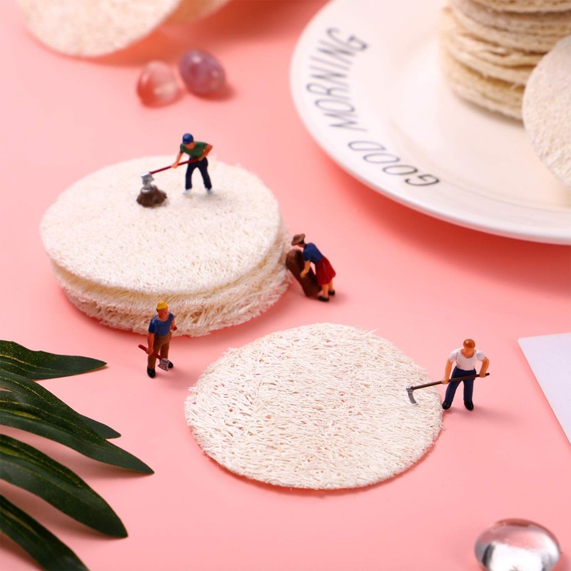 FOMIYES 50Pcs Loofah Pads Exfoliating Scrubbing Sponges Facial Complexion Skin Discs Pads Round Complexion Natural Makeup Remove Pads for Shower Bath and Spa