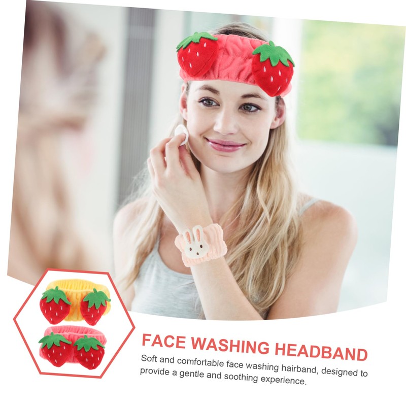 FOMIYES Cute Strawberry Headband Set Face Washing Hairband for Women Skincare Headband