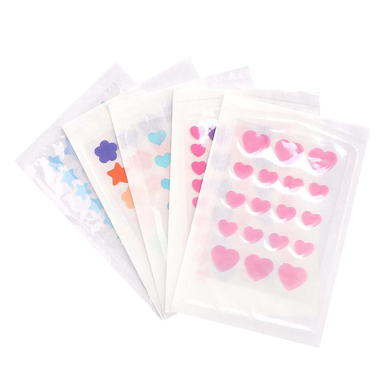 1 x Sheet of 39pcs Heart Shape Patches 1 x Sheet of 32pcs Star Shape Patches 1 x Sheet of 24pcs Heart Shape Patches 1 x Sheet of 20pcs Star Flower Shape Patches 1 x Sheet of 18pcs Heart Shape Patches