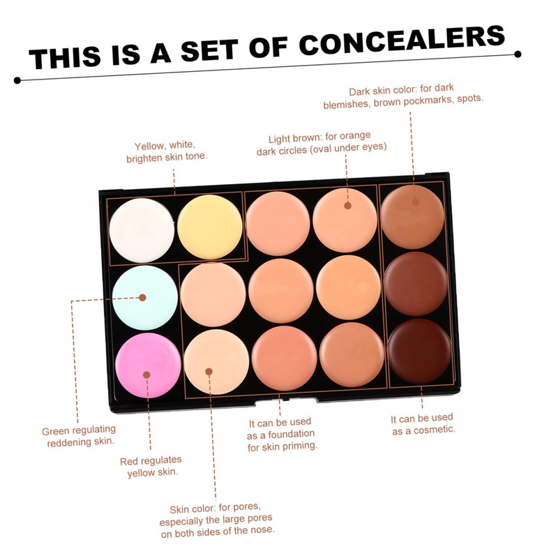 Concealers for Make-up It's made with excellent workmanship.15 Colors Concealers It is suitable for men, women, and old.Waterproof Concealer Palette This is a set of concealers, selected , wear resistant lightweight and so portable, and durable.15 Shades Colour Concealer A nice helper for makeup use