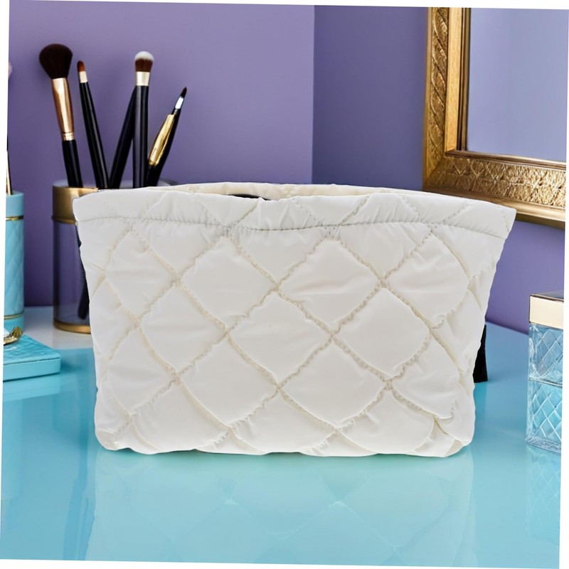 FOMIYES Quilted Portable Makeup Bag Small Cosmetic Organizer Pouch with Zipper Lightweight Travel Toiletry and Skincare Storage Compact Handheld Design for Purse and Daily Use