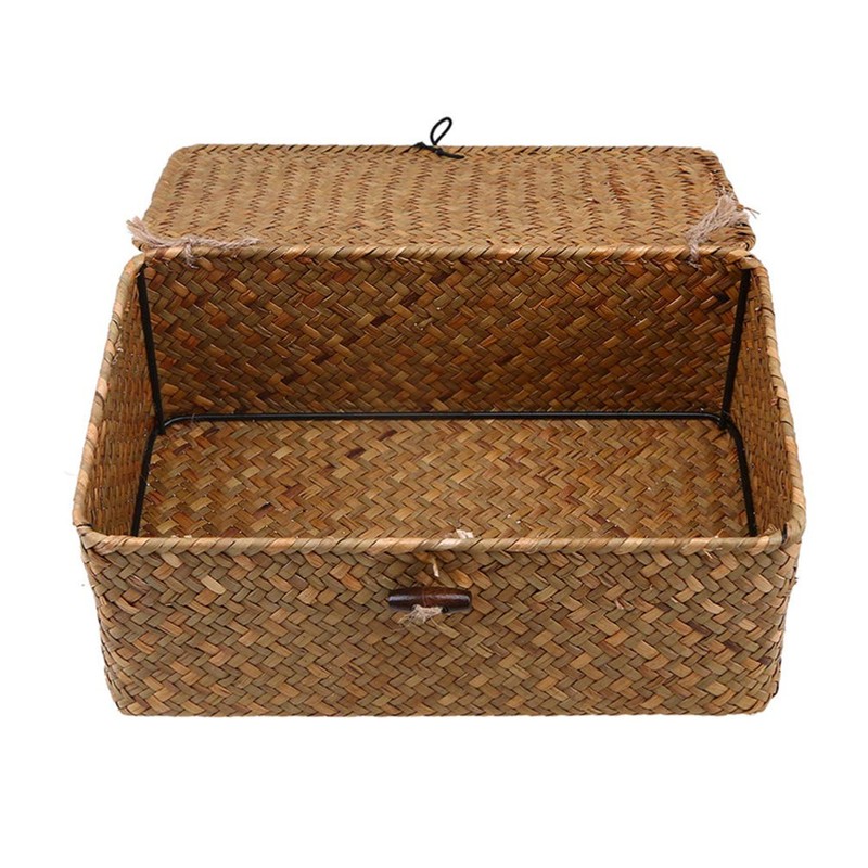 FOMIYES Woven Storage Baskets Natural Seaweed Straw Rectangular Basket Seaweed Woven Storage Box Small Desktop Organizer