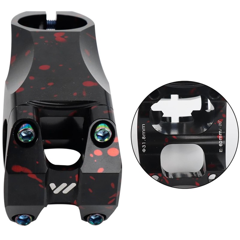 FOMTOR Bike Stem 31.8 Stem 60mm Mountain Bike Stem -20 Degree 31.8mm 60 mm Handlebar Short Stem for MTB BMX Road Bicycle Black Red