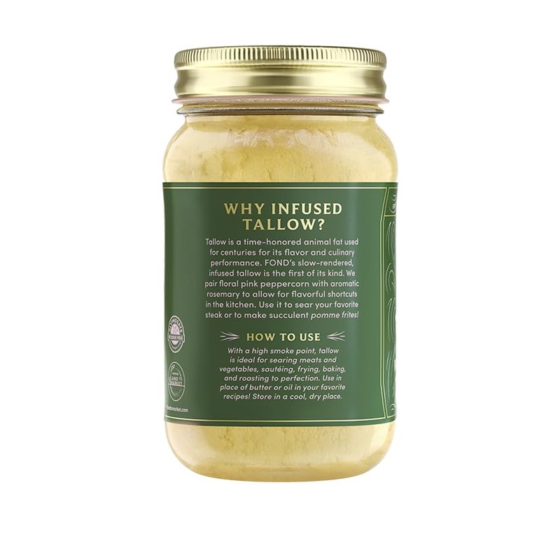 FOND Regenerative Grass-fed Beef Tallow (14 Ounce (Pack of 1), Rosemary & Pink Peppercorn)