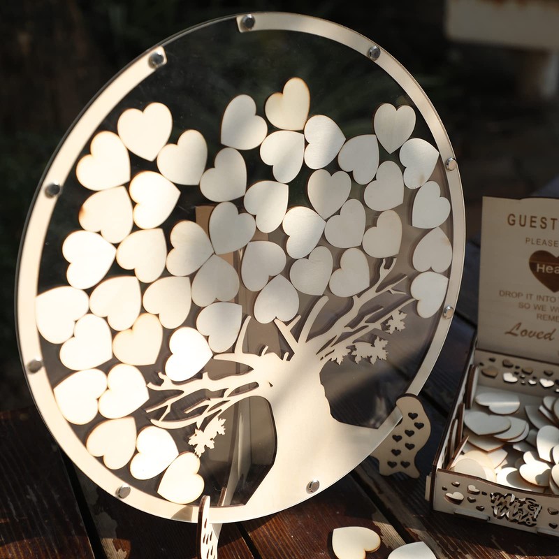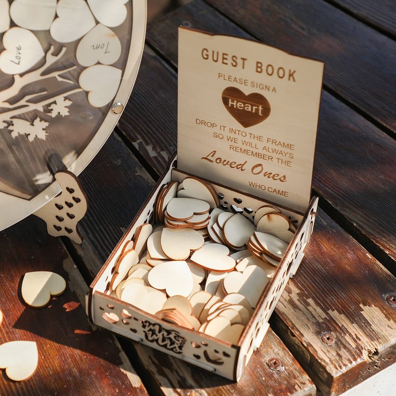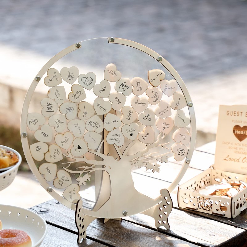 - ✅Amazing Boho Style Party Guest Book - The guest book wedding reception is made of durable wood and transparency acrylic board, which can keep these signatures and photos undamaged for a long time. Each heart is made of wood that is polished to give a smooth finish without burr.