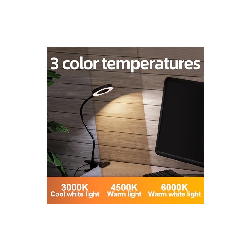 - ??Robuster Clip und 360 verstellbarer schwanenhals360 verstellbares Schwanenhals- und Ringlichtdesign, das Ringdesign ist ideal fr eine bessere W?rmeableitung und eine gr??ere Lichtfl?che. Der robuste Metallclip ?ffnet sich auf 6cm und ist auch sehr tragbar fr die Befestigung an Schreibtisch, Tisch, Garderobe, Kopfteil, Computer und anderen Orten.