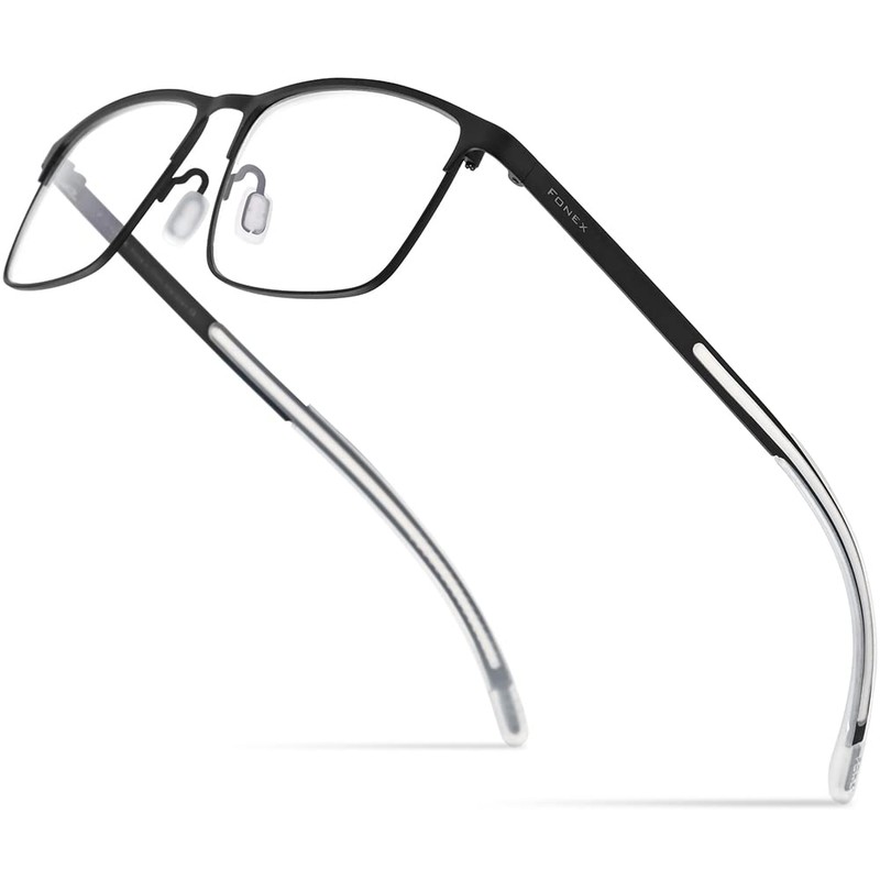 FONEX Titanium Glasses Frame,Men Square Myopia Optical Eyeglass Frame 8521, Black, 57-17-145