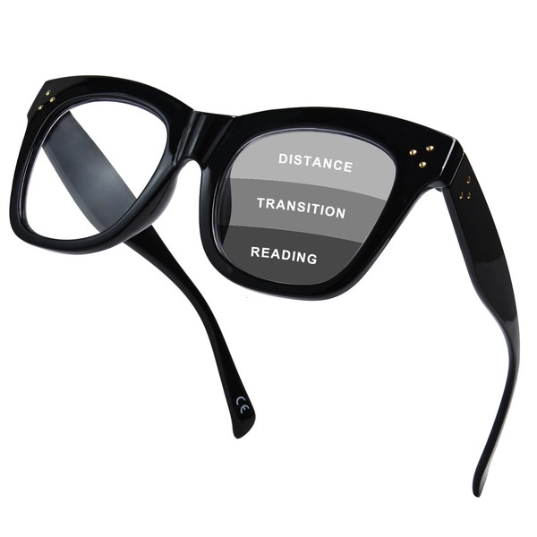 - PROGRESSIVE READING GLASSES - Enjoy extra-wide clear view zone at the top of the lens for distance vision, and the intermediate zone for working on the computer. The reading glasses zone is at the bottom of the lens so you can easily gaze at your book or tablet. (Note: slight magnification at the top of the lens)