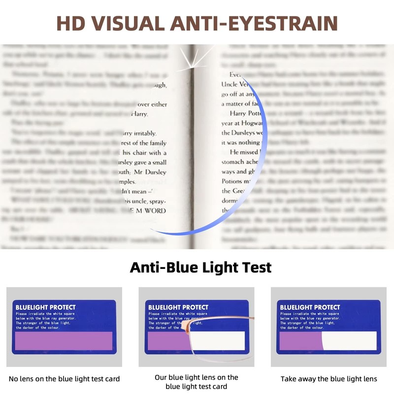 - 【BLUE LIGHT FILTERING】The anti-blue light reading glasses can filter most harmful blue light and UV400, helping you relieve visual fatigue and discomfort when using electronic devices and reading. Better protect your eyes.