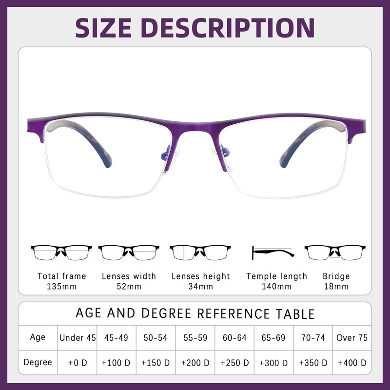 - 【PACKAGE INCLUDES】1 x Semi-rimless Reading Glasses, 1 x Glasses Bag, 1 x Glasses Box, 1 x Cleaning Soft Cloth, 1 x Glasses Screwdriver and 1 x Manual. A wonderful and sweet gift for yourself, your family and friends.