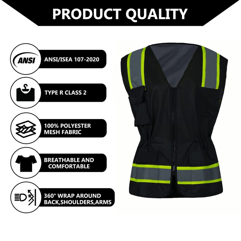 FONIRRA Hi Vis Safety Vest for Women Reflective with Pockets ANSI Class 2 High Visibility Work Construction Vest