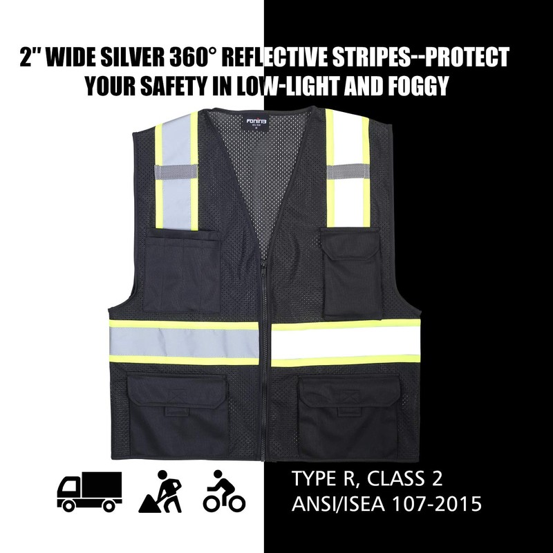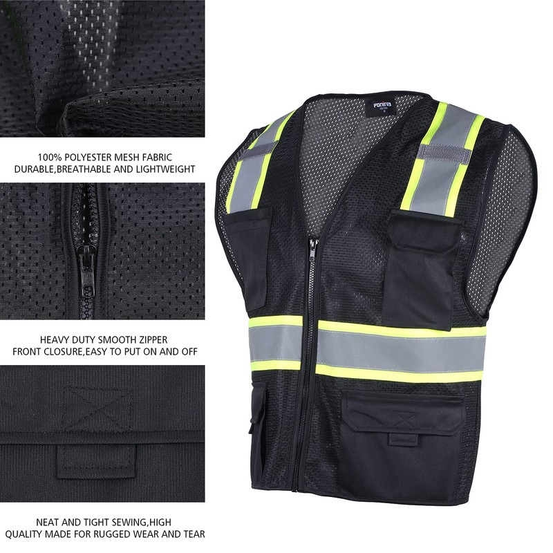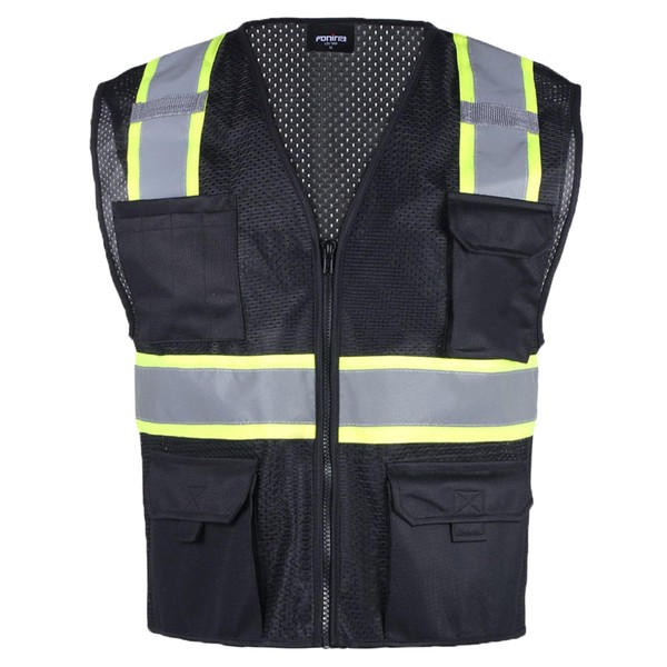 FONIRRA Safety Vest for Men High Visibility Reflective Construction Work Vest ANSI Class 2 with Pockets and Zipper(Black,2XL)