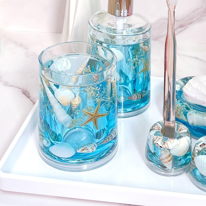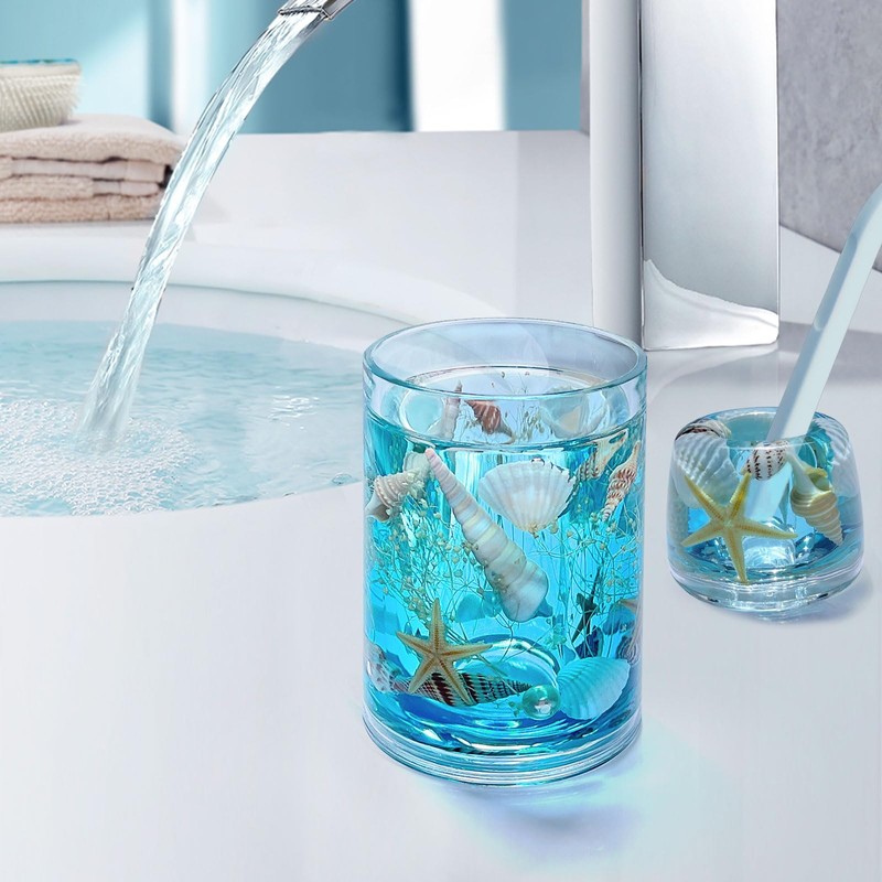 - 【High Quality&Function】:FONMY seascape bathroom cup made by Eco-friendly high quality acrylic. it’s solid enough to hold your toothbrushes won't tip over. The smooth and shinning surface makes it easy to wash and keep clean.The simple bathroom organizer makes your toothbrush keep dry ,clean and hygienic. Is a simple and beautiful hygienic solution to storing your toothbrush ,toothpaste or tongue cleaner