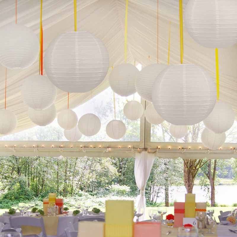 - MATERIAL: Made of strong and high-quality tissue. These round paper lanterns can be easily stored and reused, durable and not easily damaged
