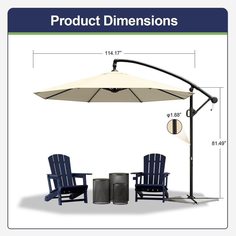 - 360° Rotation with Crank System: This cantilever-style banana umbrella features a user-friendly crank and rotary base design, enabling smooth 360-degree rotation for adjustable shade all day long