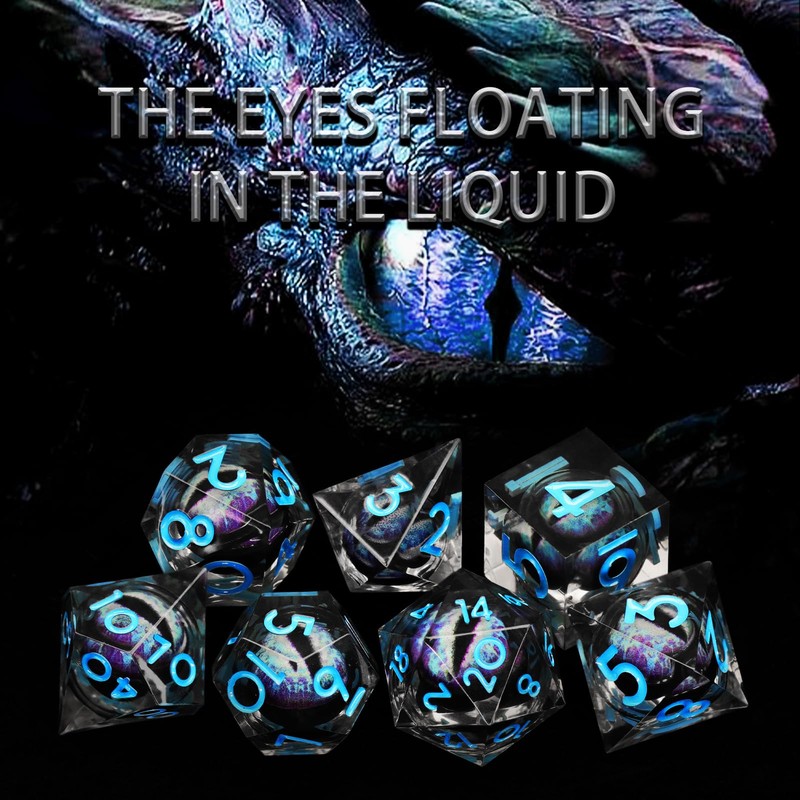 FONVGOGO DND Dice Set Movable Dragon Eye Resin Dungeons and Dragons Dice 7 Pieces Polyhedral D&D Dice Game Cube with Gift Box DND Dice Set (Dragon Eye Blue)