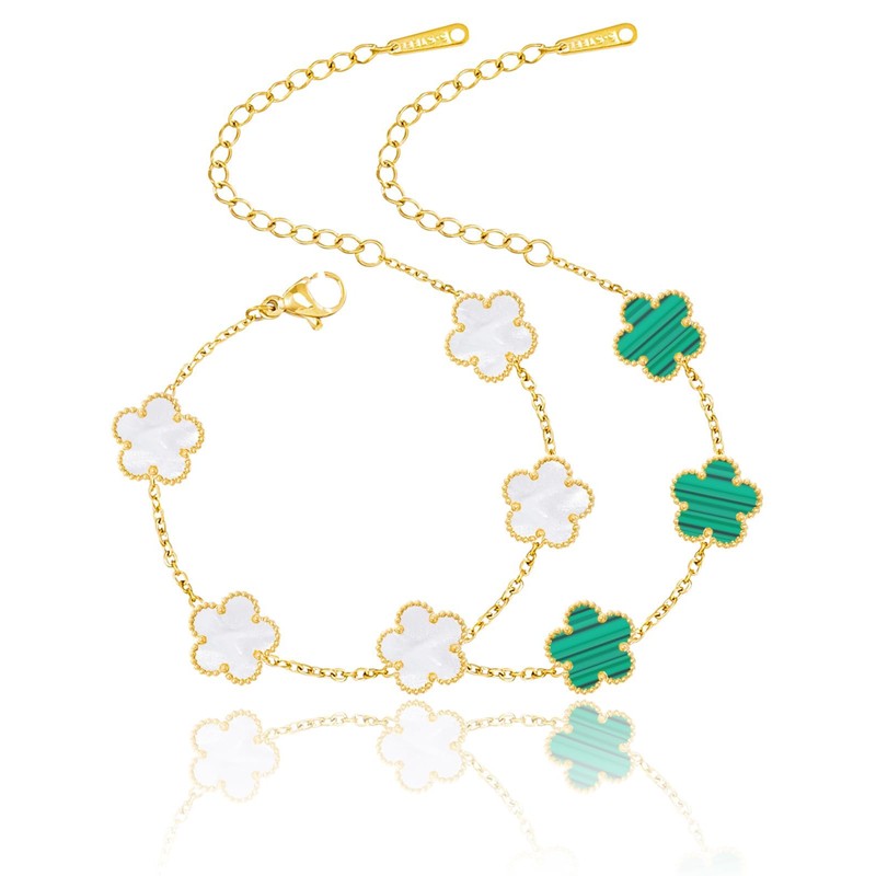 Fonyiunce Pack of 2 Four Leaf Clover Bracelet, Lucky Bracelet Women, Luxury Lucky Bracelet, 18K Gold Plated Clover Bracelet, Daen Rm, for Women and Girls (White and Green)