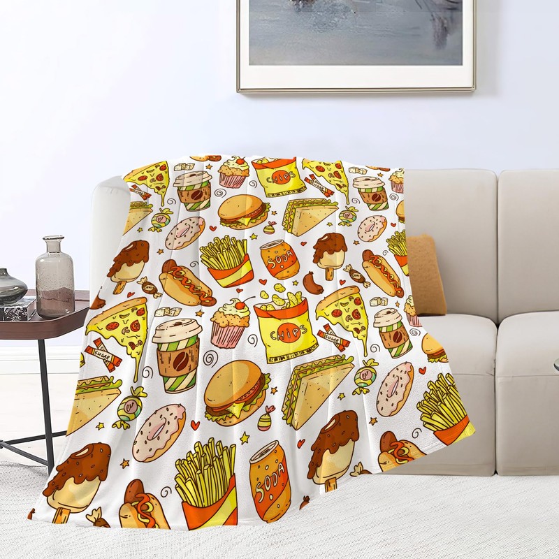 Food Blanket Gift for Girls Women Ultra Soft Cozy Fleece Fast Food Throw Blankets Fuzzy Plush Bedding Pizza Hamburger Donut Coffee French Fries Blanket for Bed Kids Adults 50"x40"