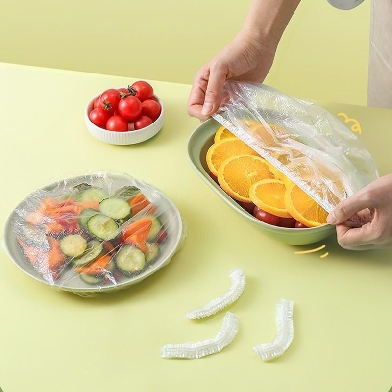 food covers plastic stretch, 200 pcs Shrinkable Food Covers, Reusable Plastic Food Covers Plastic Stretch Lids Bowl, Elastic Storage Cling Film Bag for Fruit Vegetable Meat Food Preservation