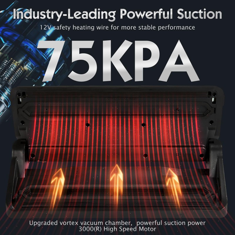 - 【Powerful Performance】The automatic vacuum sealers features a unique tempered glass exterior that perfectly complements modern design aesthetics. The high-strength tempered glass panel is resistant to wear, scratches, and impacts, making it easy to clean. The vacuum sealer for food has a powerful motor and utilizes a vortex vacuum chamber design to increase suction strength and reduce suction loss. With an 85KPA air pump and a 3000R high-speed motor, the food sealer has significantly improved suction power and excellent sealing performance.