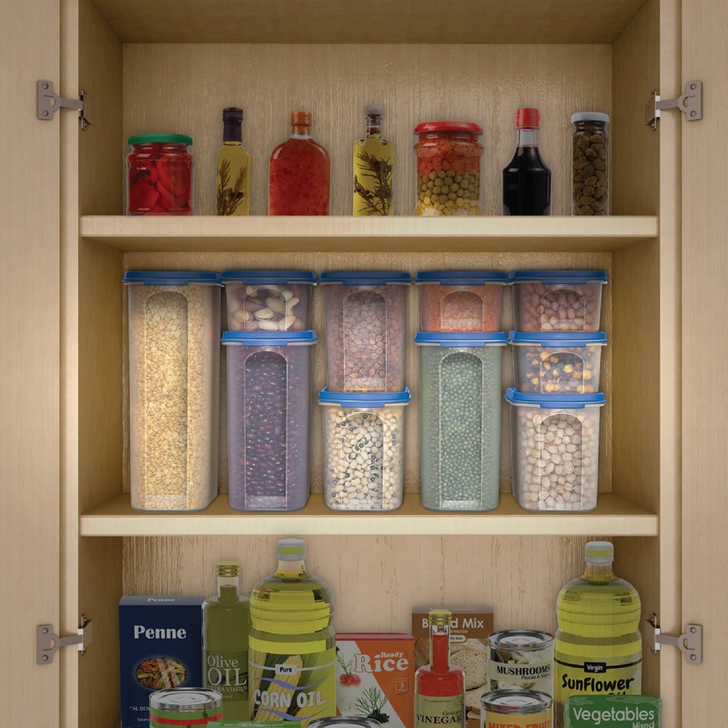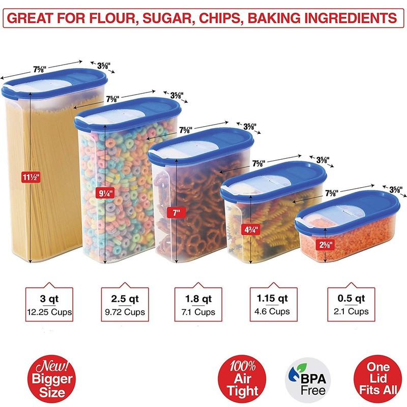- SLIM, STACKABLE, SPACE SAVING –Maximize Your Shelf, Counter or Storage Space And Get Your Cupboards/Pantry A Neat And Tidy Look. You Can Now Take Advantage Of Our Single Size Sets To Add Additional Sizes To Fit Your Custom Needs And Shelf Space.