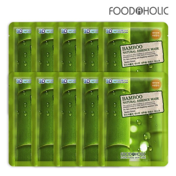 Foodaholic 3D Bamboo Natural Essence Mask Pack (10 sheets) / 푸드어홀릭3D 대나무 내추럴에센스 마스크팩(10매)